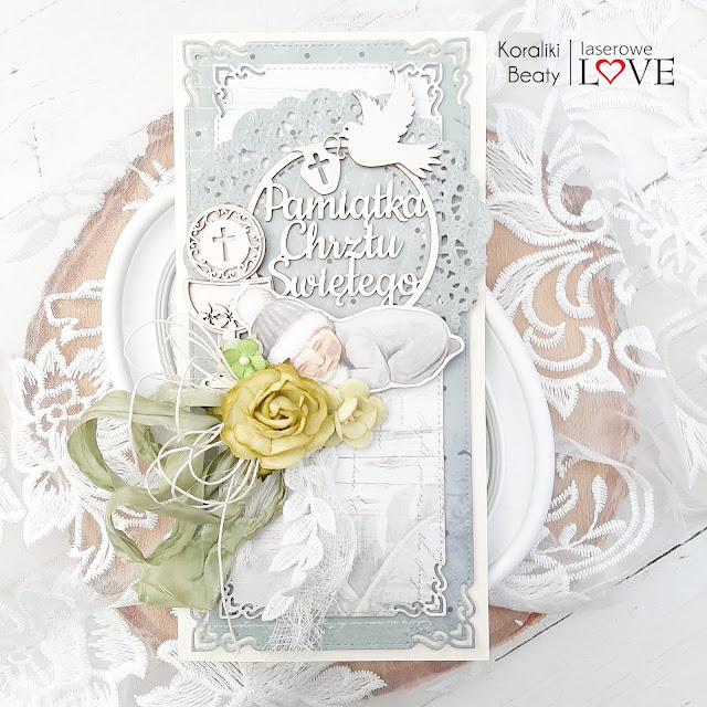 Dzisiaj pokażę Wam prosta karteczkę na Chrzest Święty. Delikatna, wykonana na papierach z Lexi Design i z tekturkami z Laserowe Love.